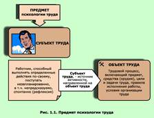 является психологическая сущность трудовой деятельности, особенности личности работающего (профессиональные способности) и его взаимодействие с производственной средой.